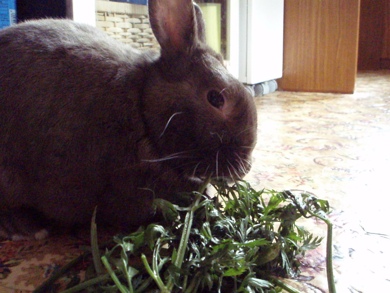 ももくん、ニンジン葉っぱ、ごちそうだねーーー